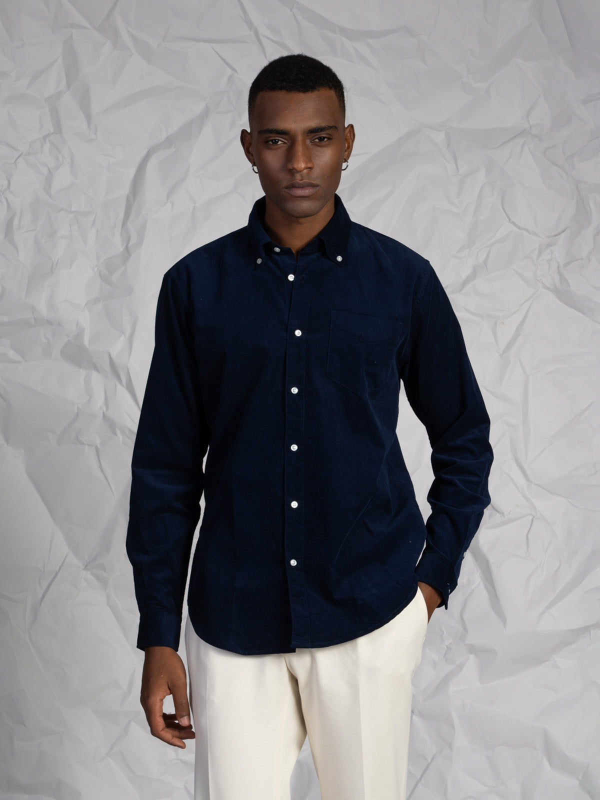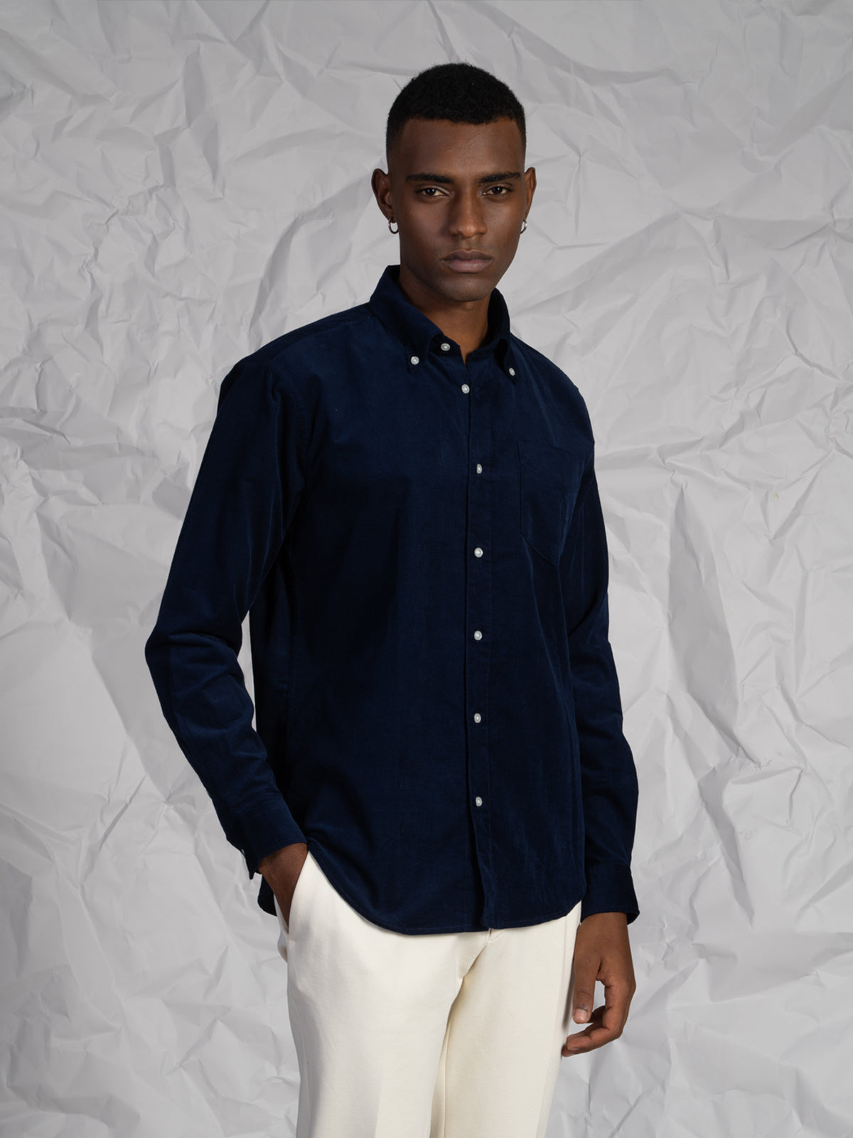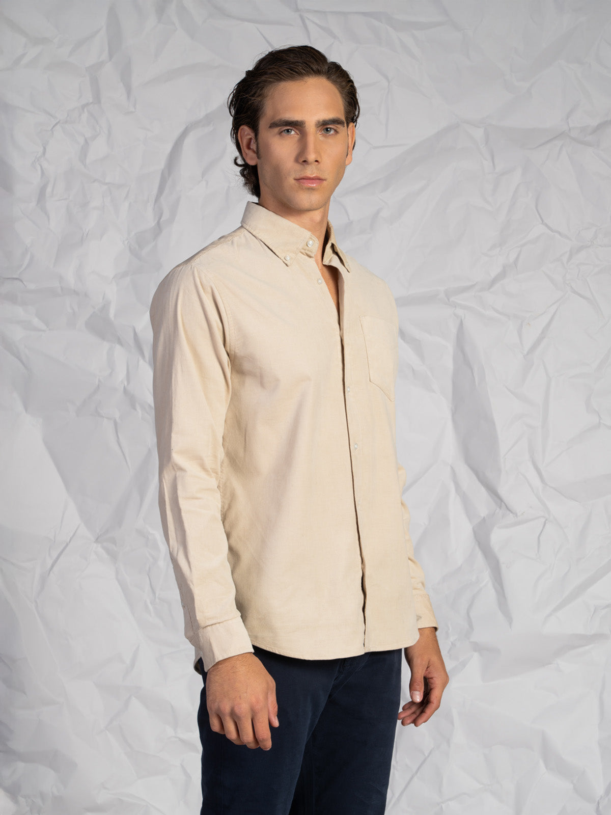 Camicia da uomo in velluto millerighe realizzata in cotone 100%, morbida e calda, ideale per la stagione più fresca. Il collo classico con bottoncini, il taschino sul petto e i polsini smussati con bottoncini le conferiscono un look casual e raffinato. Un capo dal carattere deciso, perfetto per aggiungere un tocco di stile ai tuoi outfit quotidiani.