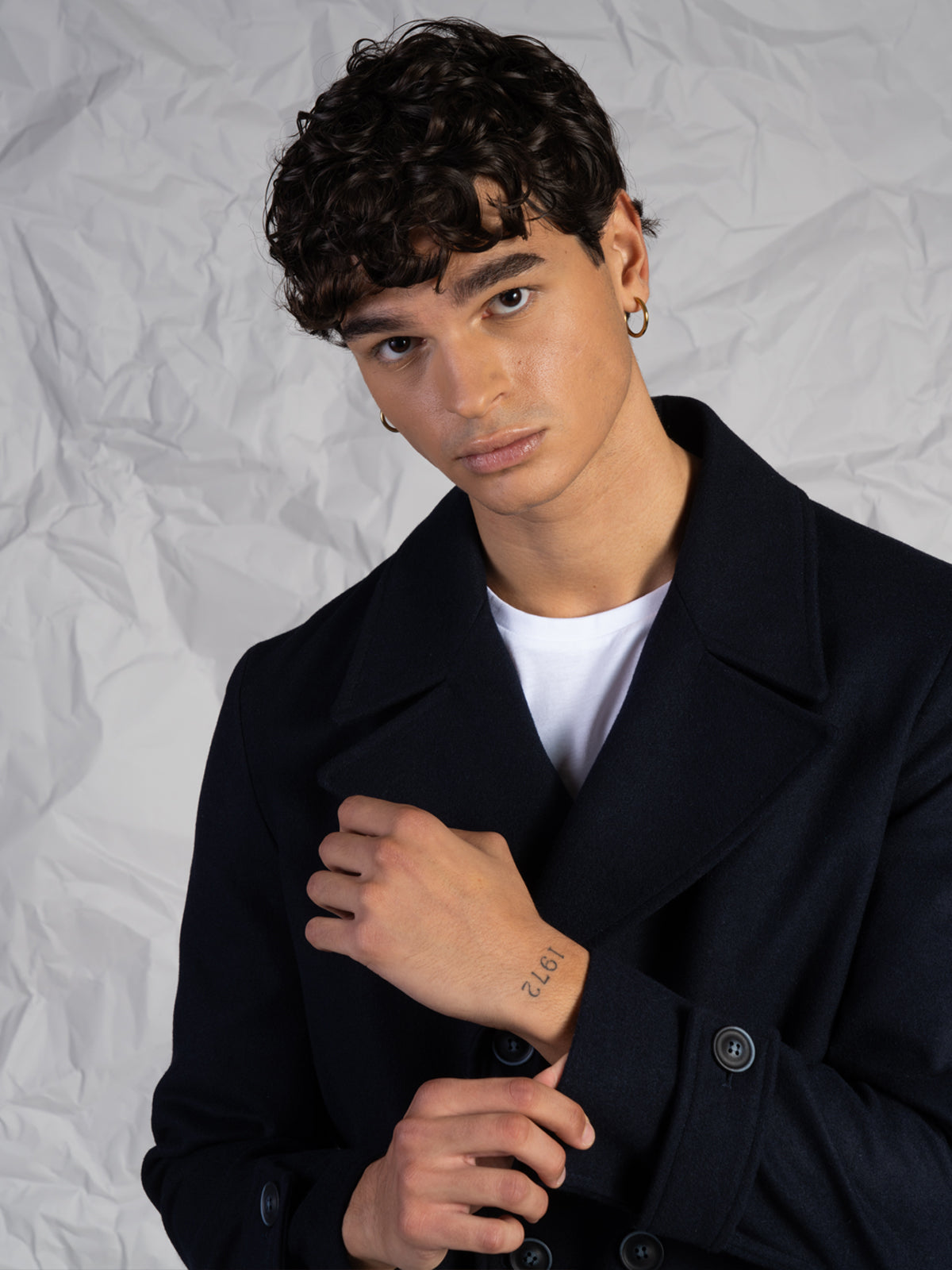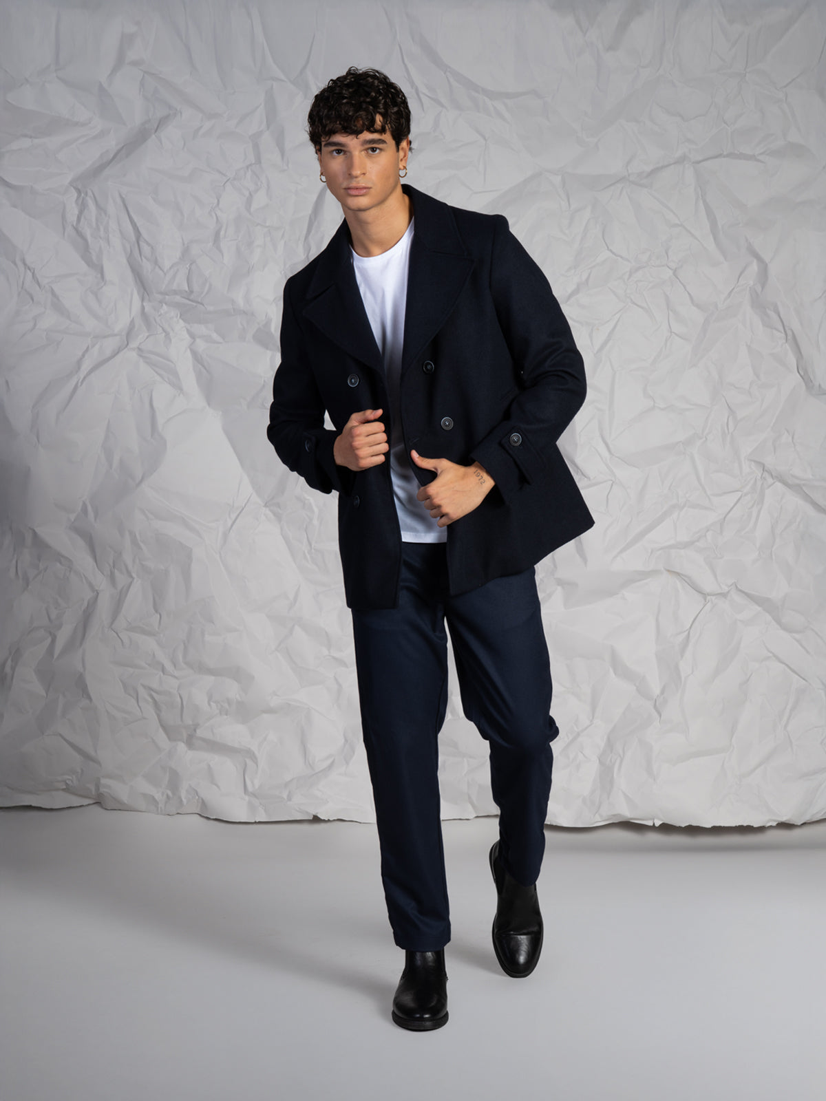 Elegante e moderno, il cappotto corto doppio petto Blooker è un capo essenziale per la stagione fredda. Realizzato in tessuto di alta qualità, offre calore e comfort senza rinunciare allo stile. Il design strutturato e la vestibilità curata lo rendono perfetto sia per look formali che casual.