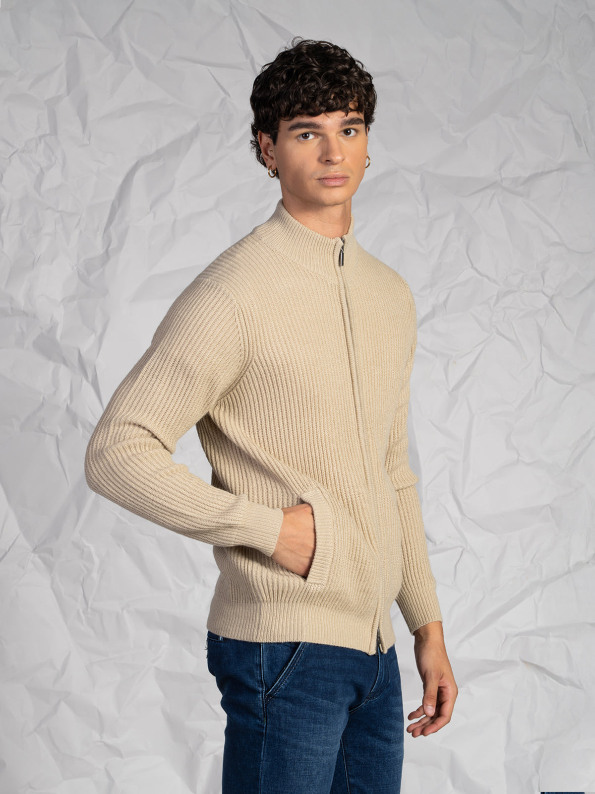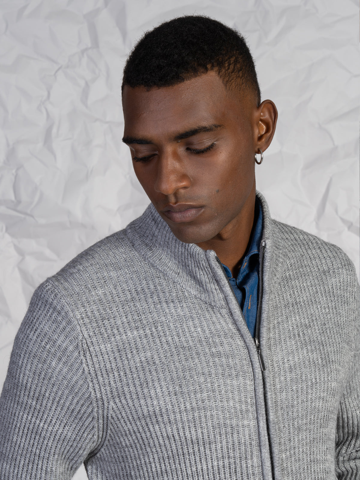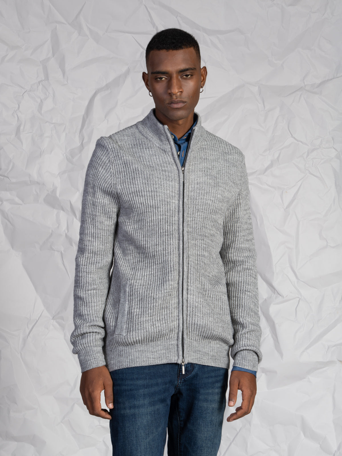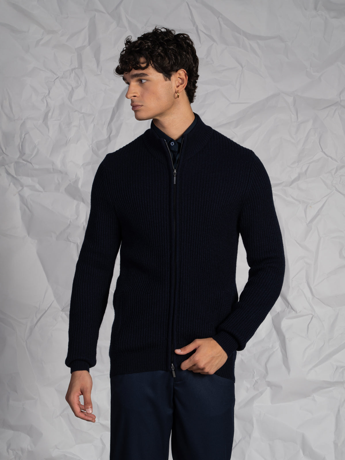 Cardigan da uomo in misto lana con lavorazione a coste, caldo e confortevole, ideale per la stagione fredda. Dotato di chiusura frontale con zip, due tasche laterali e bordi a coste per una vestibilità comoda e moderna. Perfetto per completare look casual o smart-casual con lo stile inconfondibile Blooker.