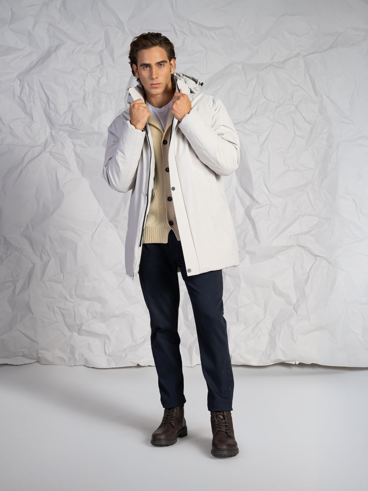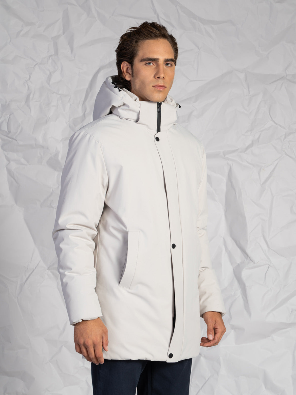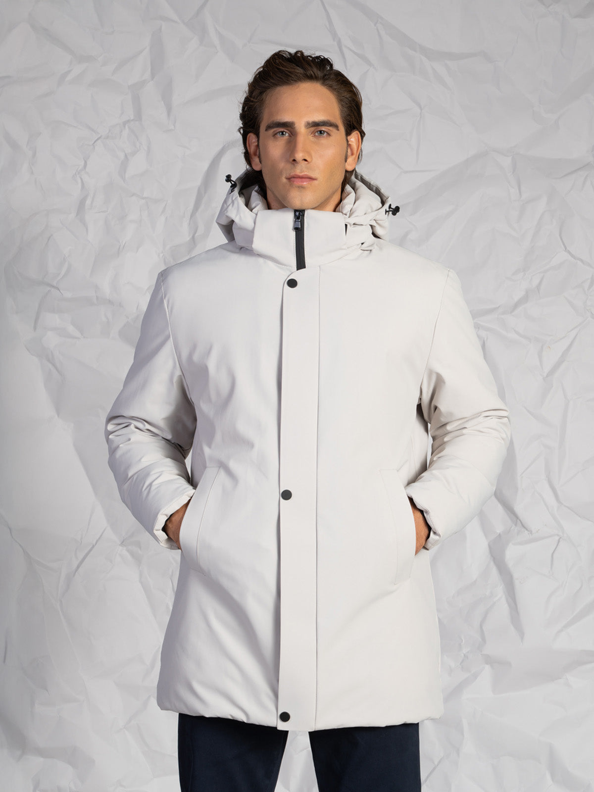 Giubbotto da uomo modello lungo, pratico e dal design moderno, perfetto per affrontare le giornate più fredde con stile e comfort. Realizzato con materiali resistenti e curato nei minimi dettagli, presenta una chiusura con zip rinforzata e bottoni coperta da una finta frontale per garantire maggiore protezione dal vento.