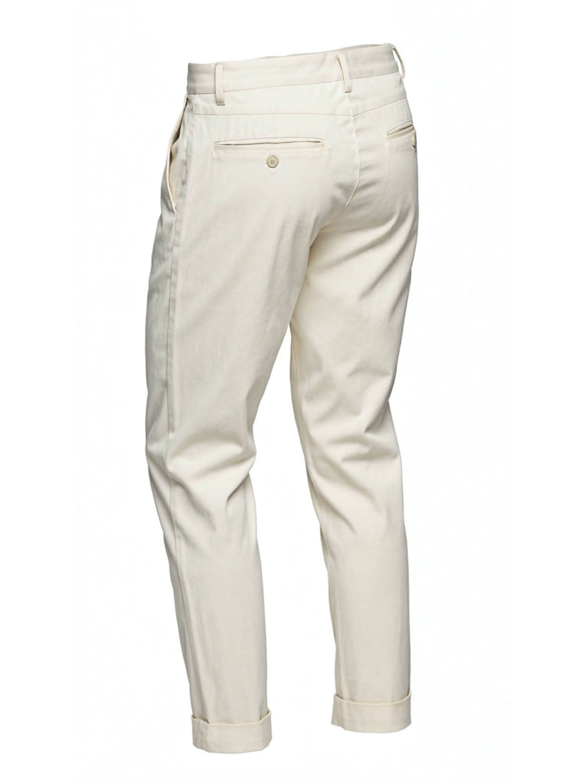 - Due tasche posteriori a filo con bottoncino